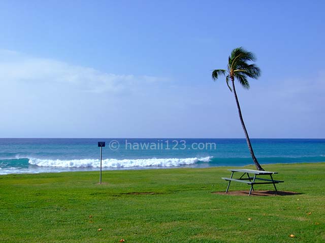 ビーチの背後には芝生広場やピクニックテーブル、子供向けの遊具などがあり、海で遊ぶだけでなくお弁当を食べたりバーベキューを楽しんだりできるようになっていて、週末には多くのローカルの人々で賑わっています。