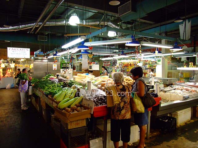 マウナケアマーケットプレイスは、チャイナタウンにあって市場のようなショッピングセンターのような、エキゾチックで不思議な場所です。ここ数年のハワイではファーマーズマーケットが人気で、元祖ともいえるKCC(カピオラニ・コミュニティカレッジ)を筆頭に各地区でファーマーズマーケットが開催されていますが、それをもう少しアジアっぽっくしたような雰囲気のお店が薄暗い店内に所狭しと並んでいます。