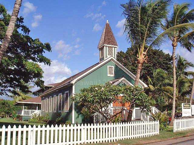 ケオラホウ コングリゲーショナル教会は、マウイ島キヘイの北のはずれ、道路をはさんで目の前にビーチが広がる場所にある教会です。教会は白とグリーンにペイントされた可愛らしい建物で、周囲にはヤシの木やプルメリアの木が並びハワイらしい雰囲気を演出しています。